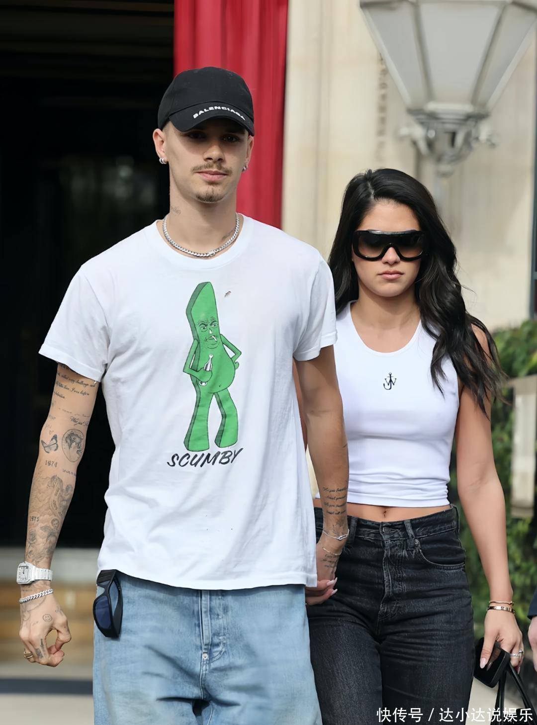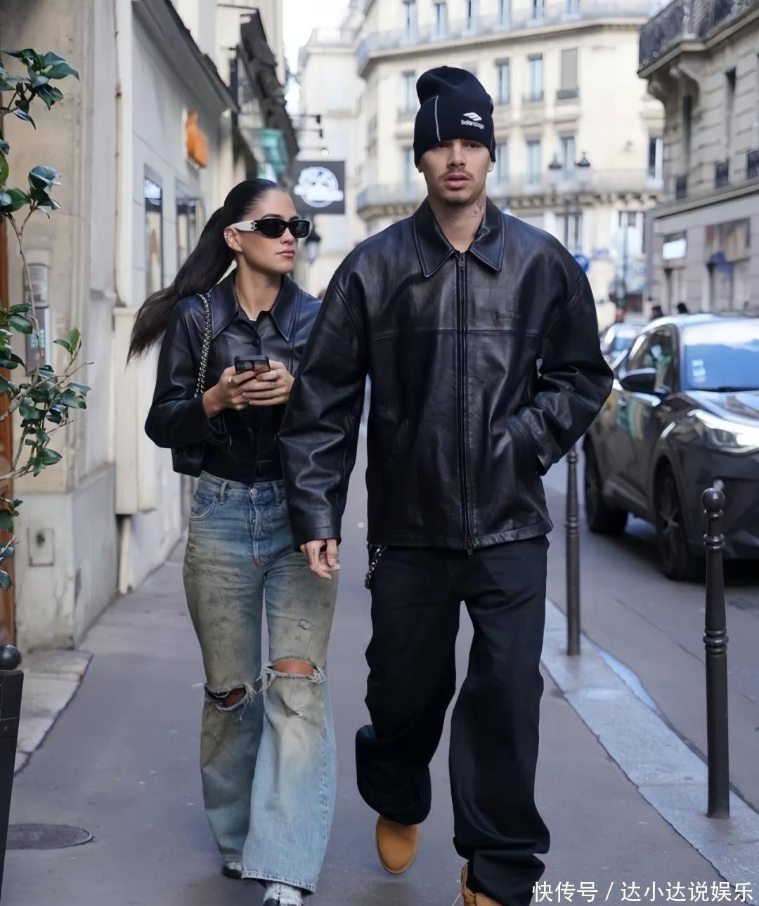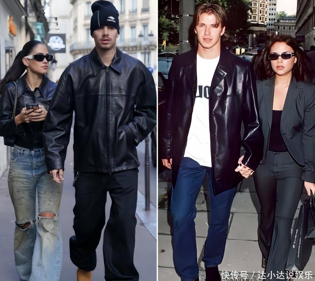 《与贝克汉姆一家同行》又更新了!这次主角,不是黄金夫妻,也不是网红大嫂,而是贝家二公子罗密欧。他和断崖式分手的前女友金-特恩布尔,又复合了。分手四个月后的两人,被拍到在巴黎甜蜜出街。两人穿着皮衣情侣装出行。罗密欧搭配了宽松的牛仔裤和 Timberland 大黄靴。而金选择了做旧牛仔裤和 Maison Margiela 分趾鞋。▼